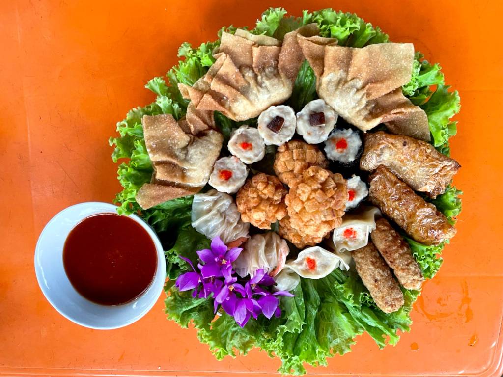 Toping dimsum merk lain rata-rata memakai mata ikan yang diwarnai dengan pewarna makanan, kalau dimsum kita memakai sesuatu yang kita racik dengan teknik tertentu yang jadinya seolah-olah mirip seperti telur kepiting.